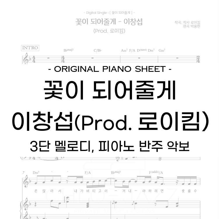 5월 12일 발매된 [꽃이 되어줄게] _ 이창섭 (Prod. 로이킴)의 3단 멜로디, 피아노 악보 입니다 :)